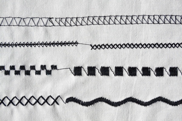 Overlock stitch. Unfortunately, this function only makes a visible stitch which is not as good as made on a special serger. Besides, it doesn’t cut the edge so you’ll have to do it with the scissors.