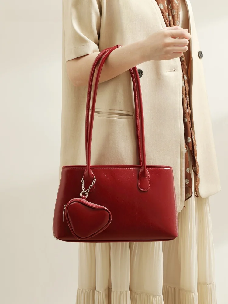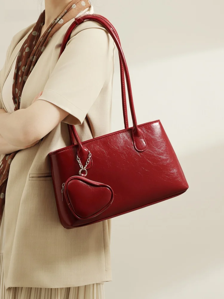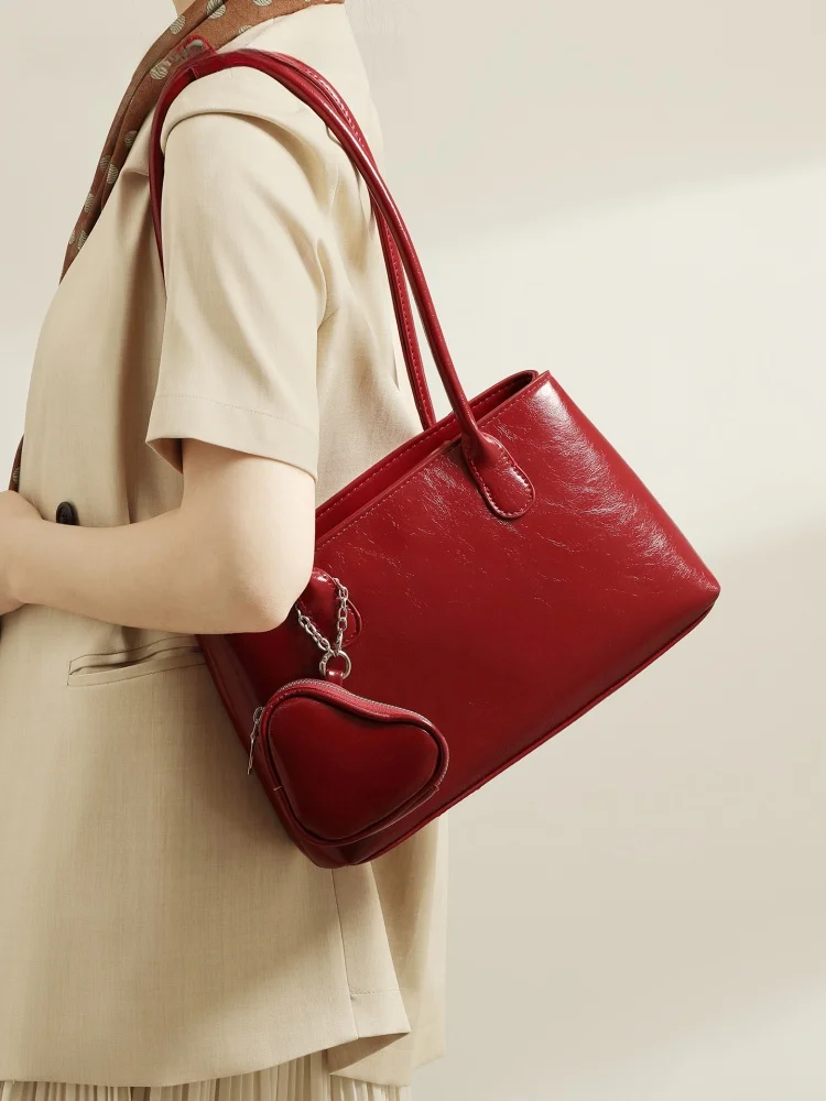 Modern Neutral Sle Wedding Bag Underarm Women's Bag Faionable Red Color Bridal Gift Soft Leather Handbag for Daily Use