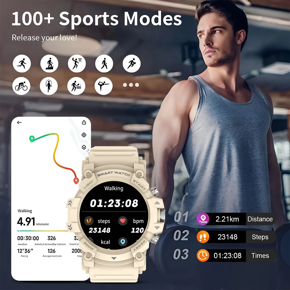 PEJE GPS Smartwatch - Waterproof, Stainless Steel Band, 5.11cm HD Display, 100+ Sports Modes, & Step Tracking, Wireless Calls