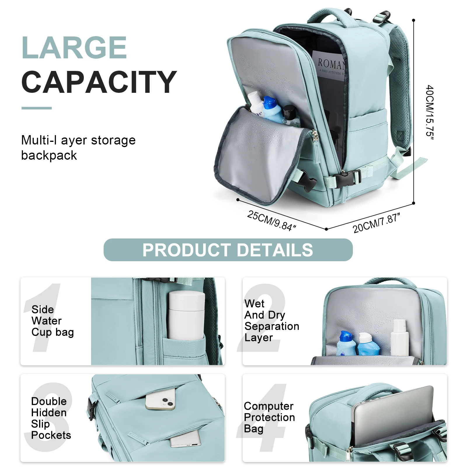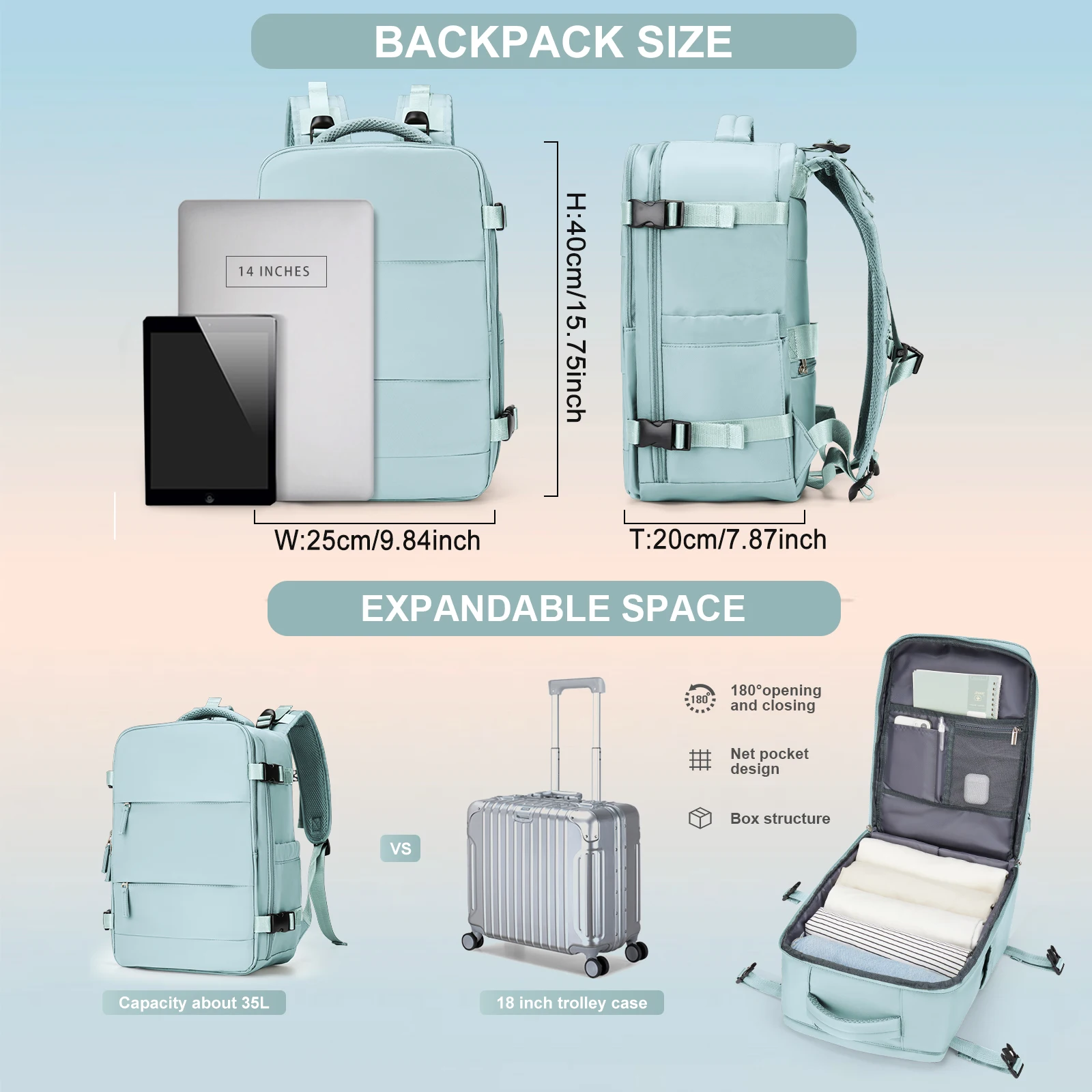 Ryanair Cabin Bag 40x20x25 Under-Seat Travel Luggage, New Carry-On Backpack, Casual Daypack & School Bag for 14-Inch Laptop