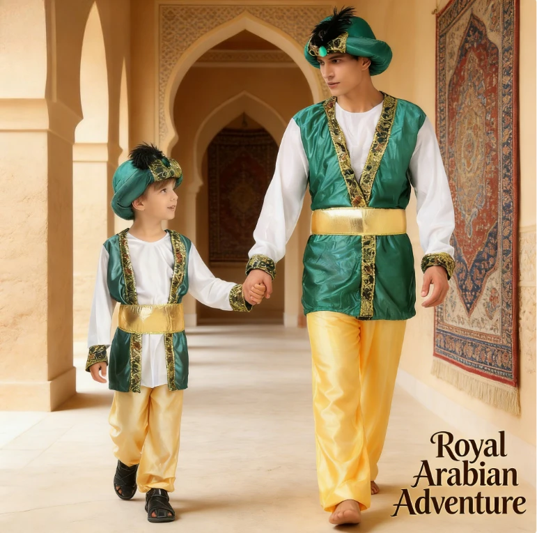 Kids Adults Arabic Prince Cosplay Muslim Sheikh Costume Halloween Party
