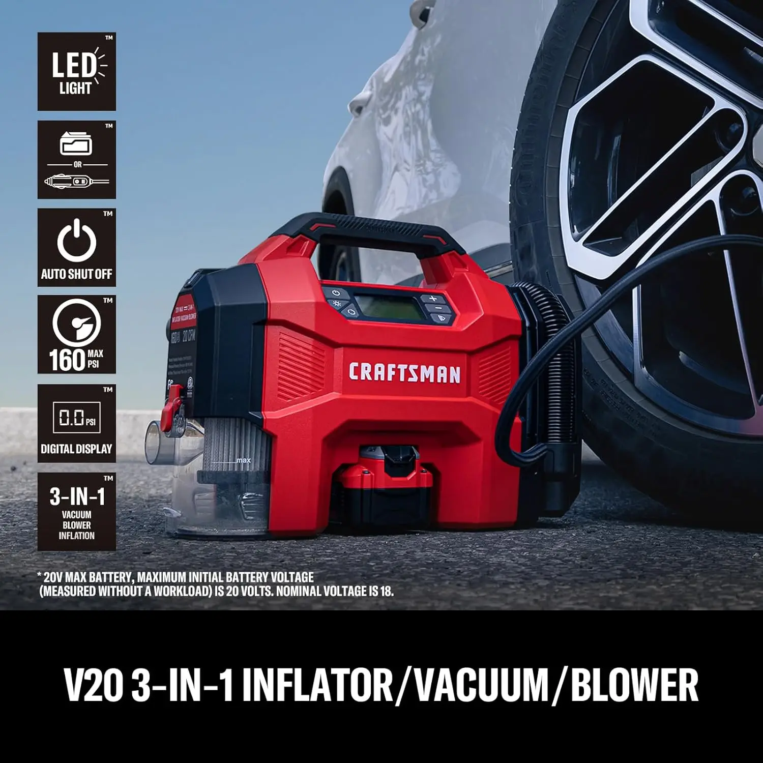 3-in-1 Cordless Tire Inflator with 160 PSI, Car Vacuum & LED Light for Vehicles and Sports Gear