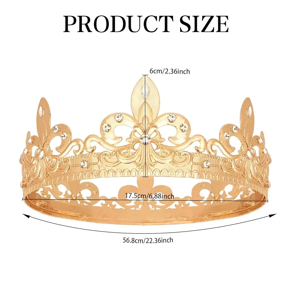 King Crown for Men Regal King/Queen Tiara Prince Diadem Medieval Headwear Birthday Prom Halloween Cosplay Costume Accessorie