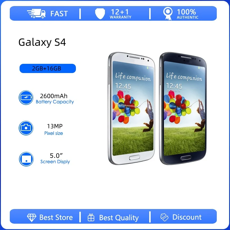 -50% Refurbished Original Galaxy S4 I9500/I9505 Unlocked 5.0 inches 13MP 2G/3G 2600mAh 16GB 2GB RAM Mobile Phone $40.25
