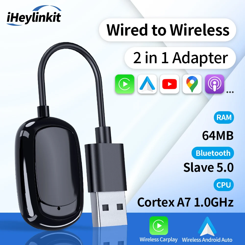 -67% IHeylinkit New 2 In 1 Mini Wireless Carplay Android auto Wireless Adapter Smart connectivity for most vehicle models $10.18
